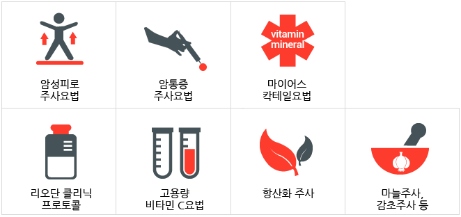 - 암통증 면역주사는 환자의 상황 및 필요에 맞추어 기능의학적 지식을 토대로 제작된 여러 비타민과 미네랄의 조합입니다.